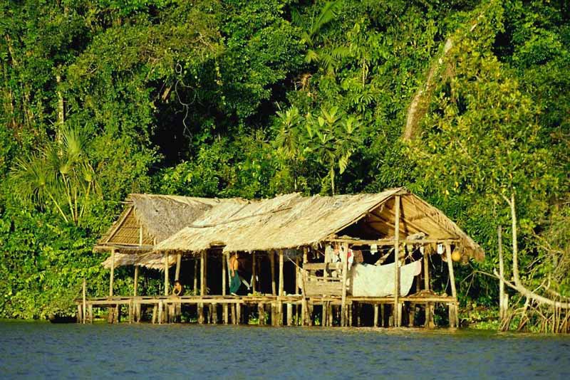 En comunidades establecidas la vivienda se compone de dos palafitos, uno a cada lado de la pasarela principal que conforma poblado, la cocina-fogón en el lado del río y la casa de los chinchoros en el lado interior.