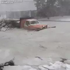 Otros videos muestran inundaciones en Massachusetts con la mitad del agua congelado y la otra mitad en estado líquido, por la que intentan pasar los conductores.