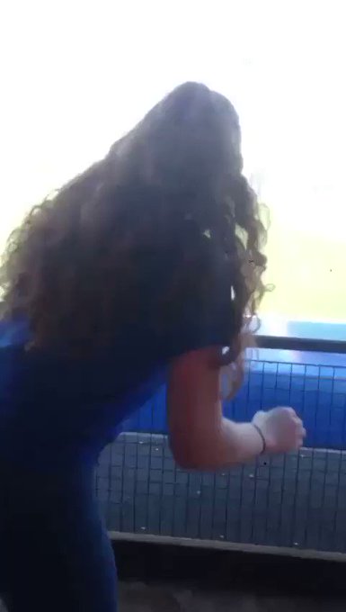 La protagonista del video, con una cabellera larga, cayó tras saltar la valla de protección, pero el fracaso no la desanimó. Volvió a ponerse de pie y saltó rumbo al campo en un segundo intento, pero esta vez fue sorprendida por un fortísimo impacto del chorro de agua de una manguera.