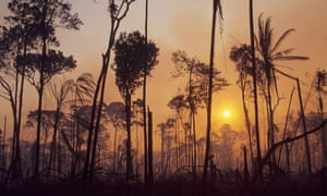 Los partidarios de Bolsonaro libran la guerra en la selva *La mayoría en la frontera occidental fuertemente deforestada de Brasil apoyan a Jair Bolsonaro y sus promesas de progreso en lugar de protección* por Dom Phillips en Porto Velho Imagen principal: Las encuestas muestran que Jair Bolsonaro cuenta con un 78% de apoyo en el estado de Rondônia, en el extremo deforestado deforestado, en la frontera occidental de Brasil. Fotografía: Imágenes ambientales / Grupo de imágenes universales / REX / Shutterstock Jue 25 oct 2018 06.00 BST El gruñido de una motosierra y el aullido de un motor... más »