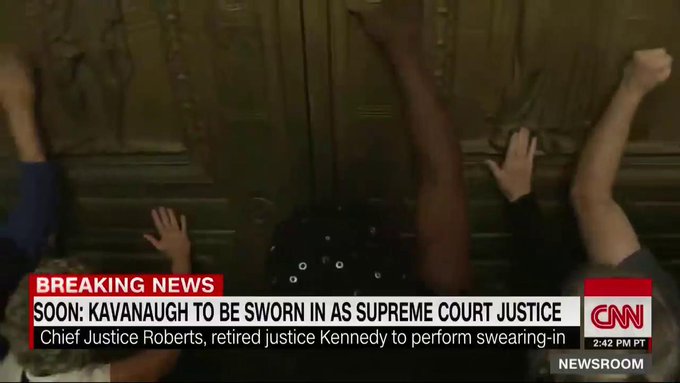 Pocas horas después de que el Senado confirmara su candidatura, Kavanaugh ha prestado juramento en el edificio de la Corte Suprema mientras una multitud de manifestantes cantaba y se abalanzaba sobre la entrada del edificio.