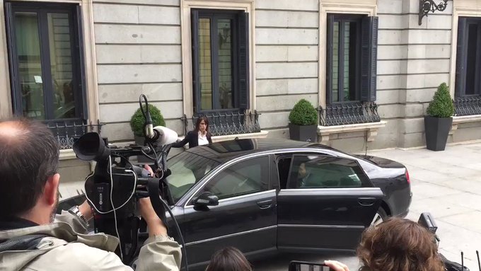 La vicepresidenta Soraya Saénz de Santamaría ha sido muy tajante cuando le han preguntado por la posible dimisión de Rajoy y ha asegurado que Rajoy no piensa dimitir ni hoy ni mañana.
